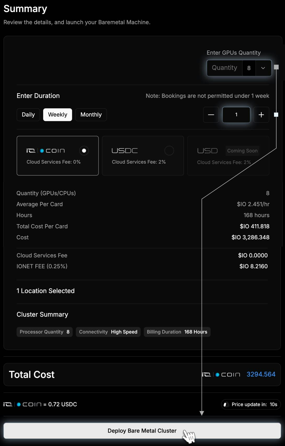 Bare Metal on Demand will no longer be available starting Wednesday, October 1, 2025.If you need Bare Metal, please contact our sales team at business@io.net for managed services.Bare Metal On Demand clusters do not provide