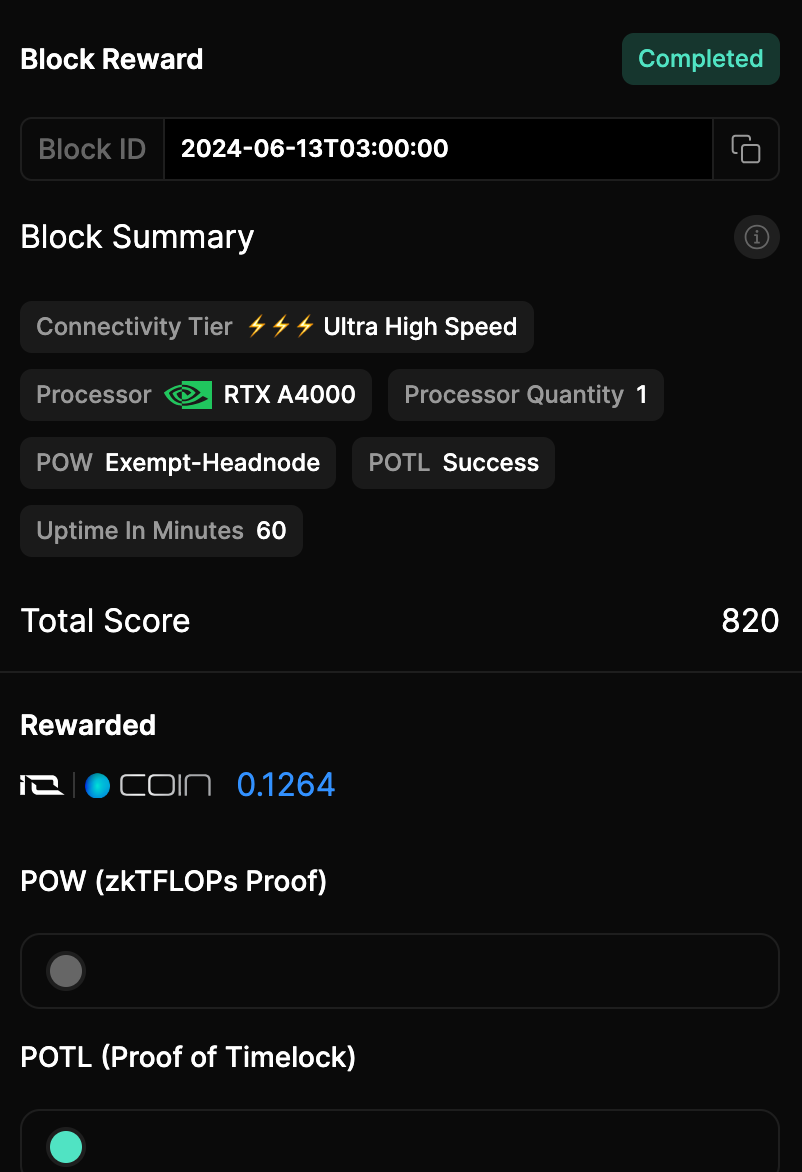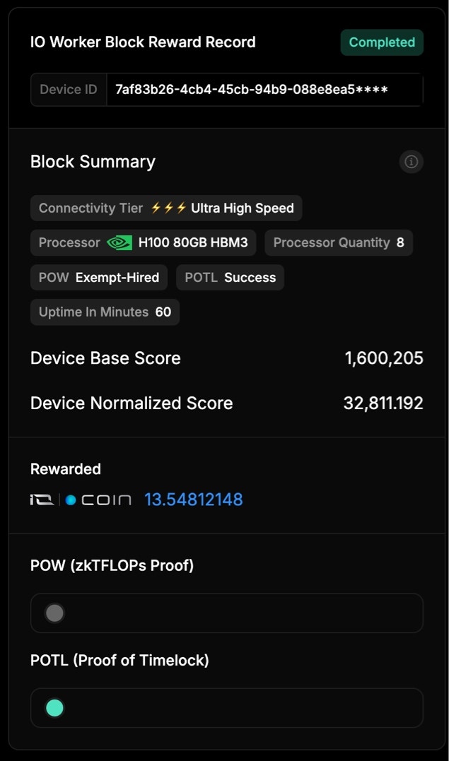 | POW (zkTFLOPs Proof) | A computational task verifying the worker’s performance. Not executed against hired workers. (Learn more) |