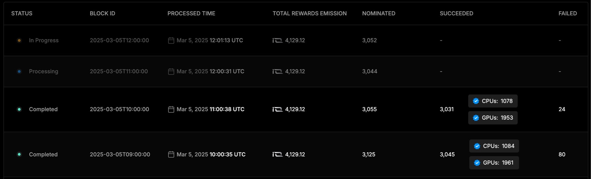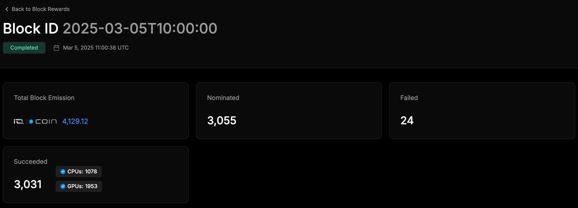 | Nominated Workers | The number of devices that were nominated for Block Rewards. |