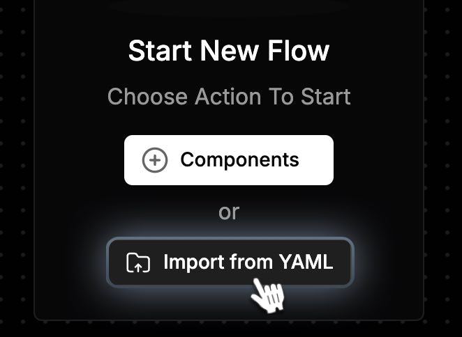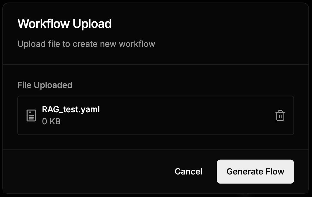 | Upload Flow | Click Import From YAML, select .yaml, click Generate |