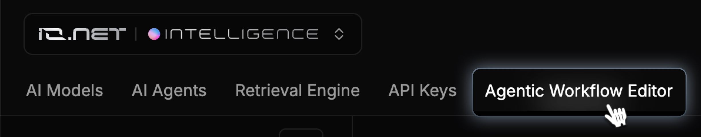 - Navigate to the Agentic Workflow Editor under IO Intelligence section.