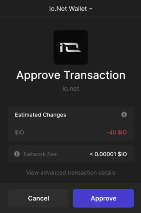 - Requested Amount: Amount of $IO requested by the device owner.