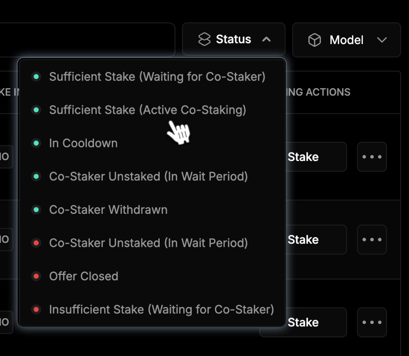 To view offers, click the ellipsis next to the device and choose Co-Staking Details.