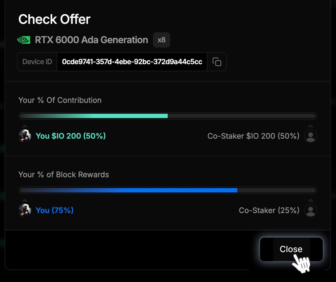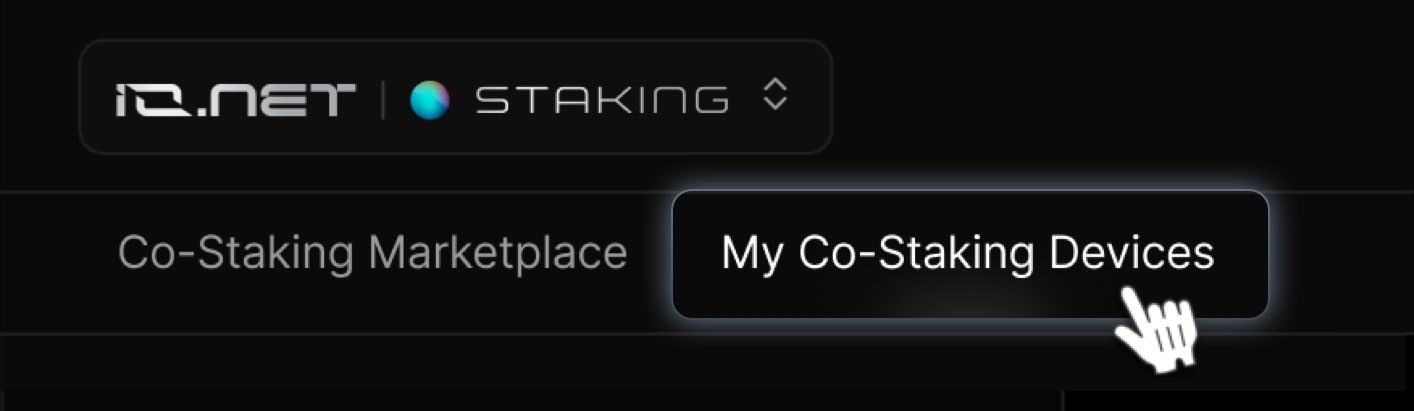 Go to IO Staking > My Co-Staking Devices to see your devices listed with Co-Staking.