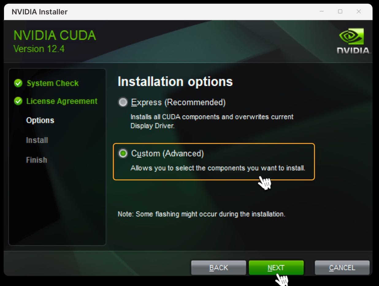 When reinstalling the CUDA Toolkit, opt for Custom (Advanced) installation.