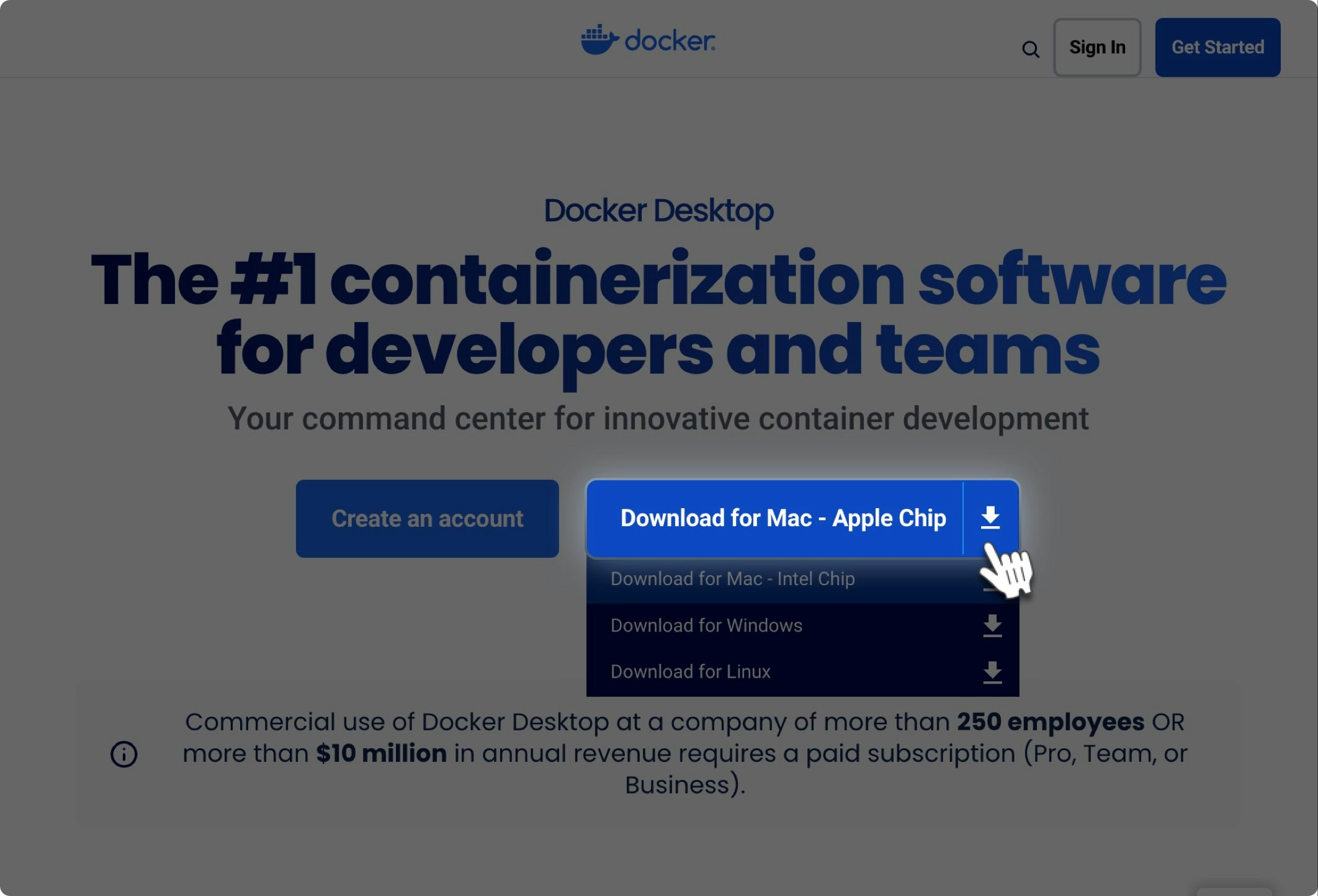 Go to the Docker website and click on “Download for Mac - Apple Chip.” Downloading the Docker file may take some time. Please be patient.