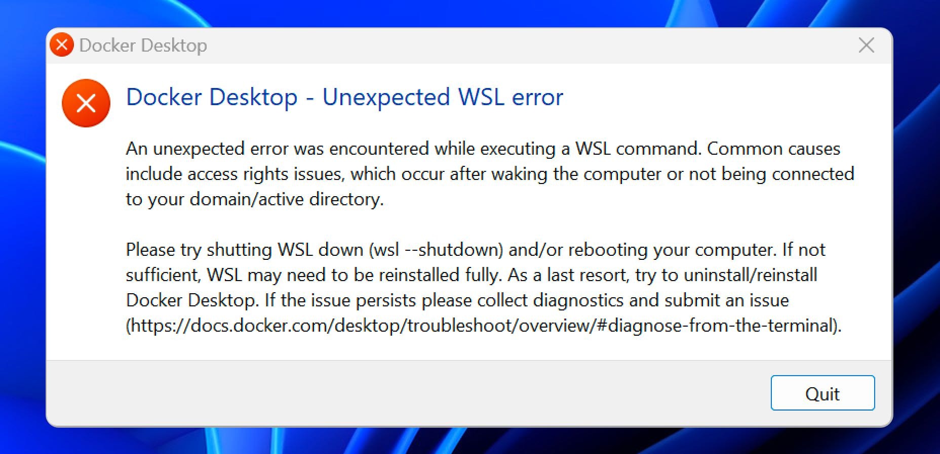 Fixing the “Docker Desktop - Unexpected WSL error” in Windows
