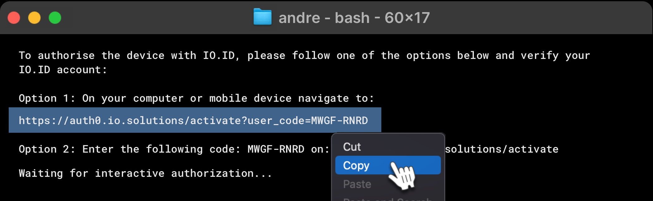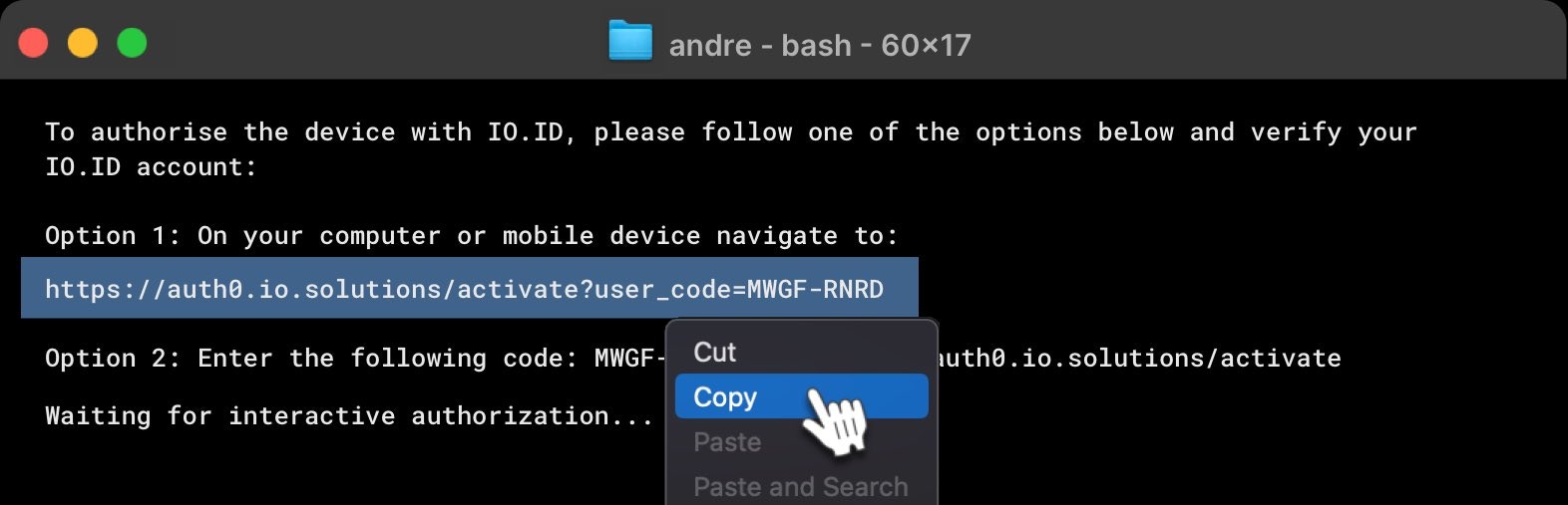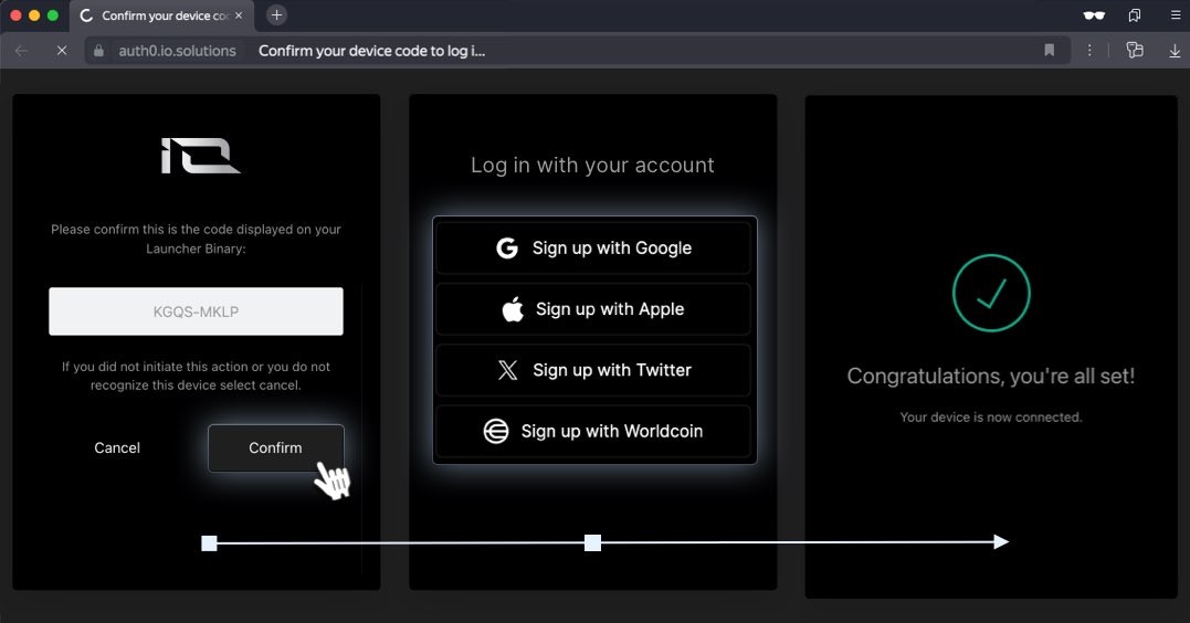 2: To authorize the device with IO.ID, follow one of the options below and verify your IO.ID account: