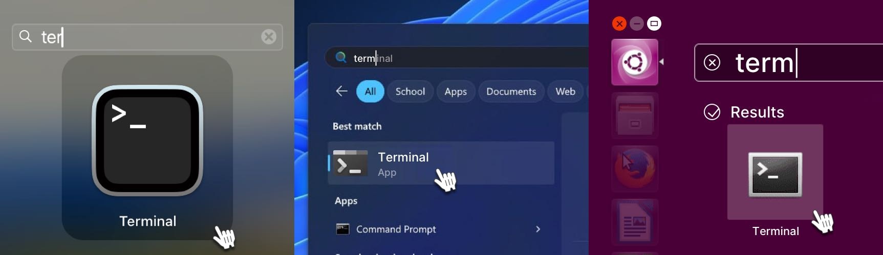 Open the Terminal on your system by navigating to the Start menu and using the search function. The process is similar regardless of your operating system.
