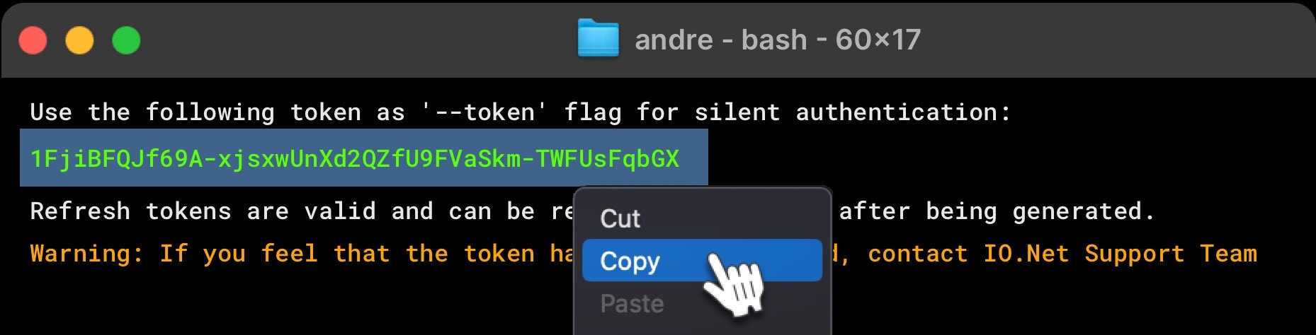 The information below is found in the CLI. Keep this token accessible.