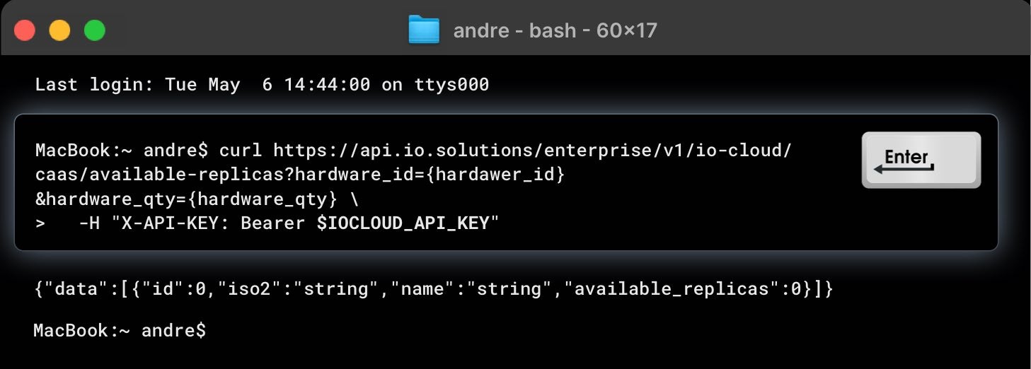 Here is an examplecURL command to check available replicas per location in IO Cloud: