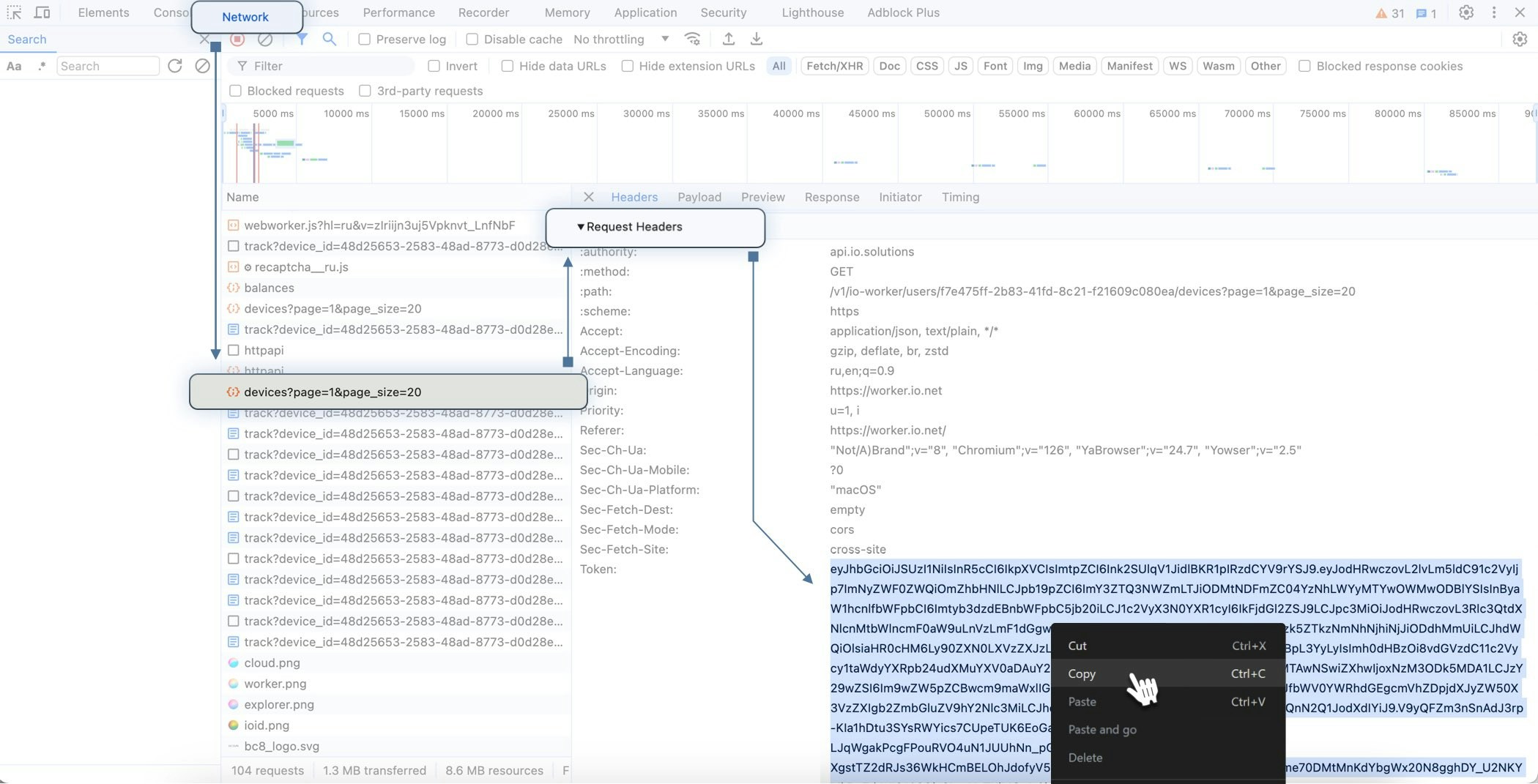 IO’s API is built around RESTful principles. You can use IO’s APIs to gain insights into different elements of our network. To use IO’s APIs, you must supply a JWT token in the header of your request. Follow the instructions below to generate a token:- Go to io.net > IO ID > io.cloud tab.